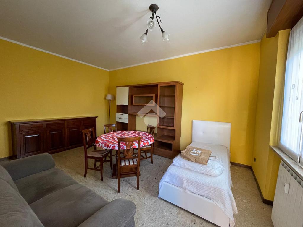 Appartamento al secondo piano con ascensore. Così composto: ingresso, soggiorno, cucina, camera e servizio. Balcone. Box e cantina. Riscaldamento centralizzato a gestione autonoma, con contabilizzatore dei consumi. Contratto richiesto è di natura transitoria massimo 18 mesi. Non è possibile portare la residenza. Nel canone mensile sono esluse le spese condominiali.