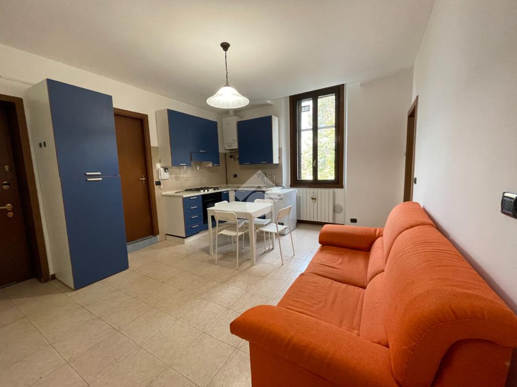 Appartamento al secondo piano senza ascensore. Così composto: ingresso, soggiorno con angolo cottura, camera e servizio. Ripostiglio. Posto auto e ampia cantina. Riscaldamento autonomo. L'immobile è ideale per due persone, con reddito dimostrabile. Nel canone mensile sono escluse le spese condominiali. L'immobile è disponibile subito.
