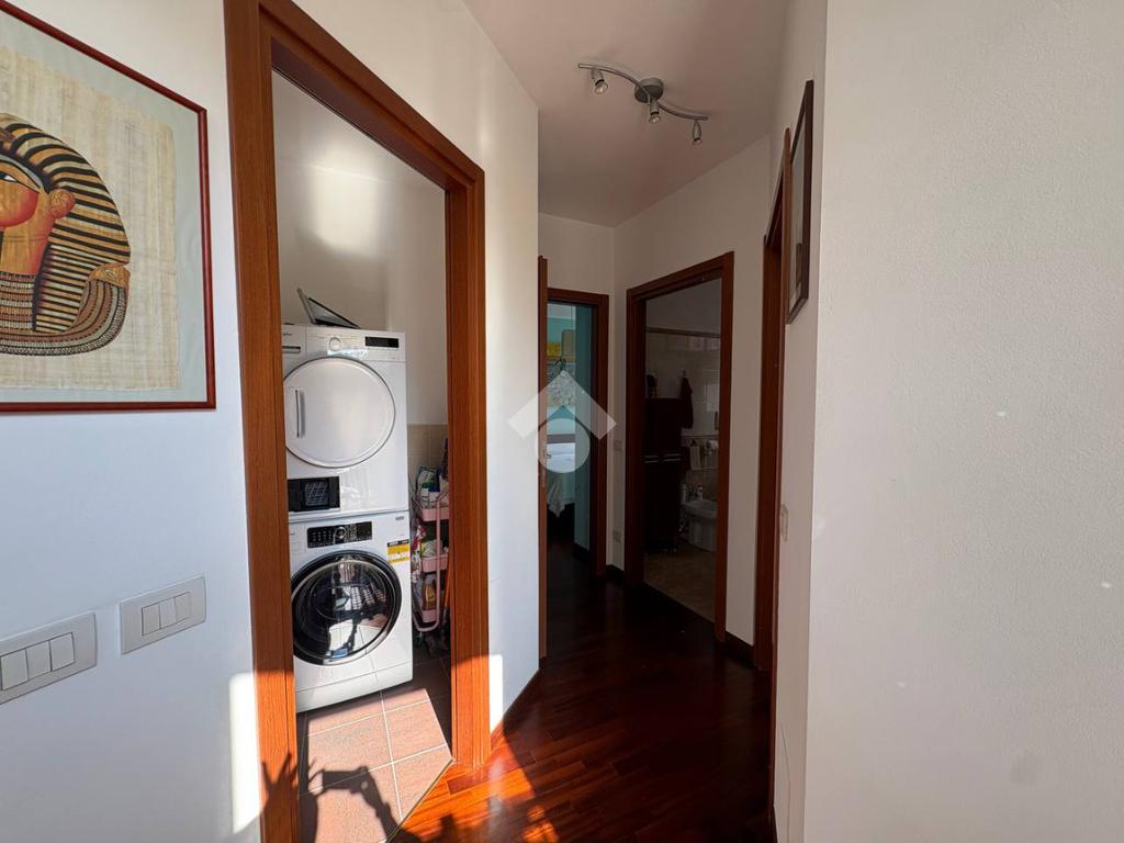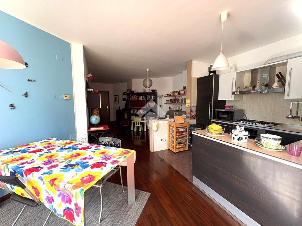 Zona Piscina. In contesto condominiale del 2006 con ampio verde condominiale situato tra la Piazza Carroccio e le scuole Bernocchi. Appartamento rifinito interamente in parquet composto da ingresso, soggiorno con cucina a vista, camera matrimoniale con cabina armadio, cameretta, servizio e comodo ripostiglio. Completano la proprietà cantina e box singolo garantendo praticità e sicurezza. Riscaldamento centralizzato a gestione autonoma. La posizione strategica consente di godere di tutti i servizi e le comodità che la zona offre, rendendolo una scelta ideale per chi cerca un'abitazione funzionale e ben collegata.